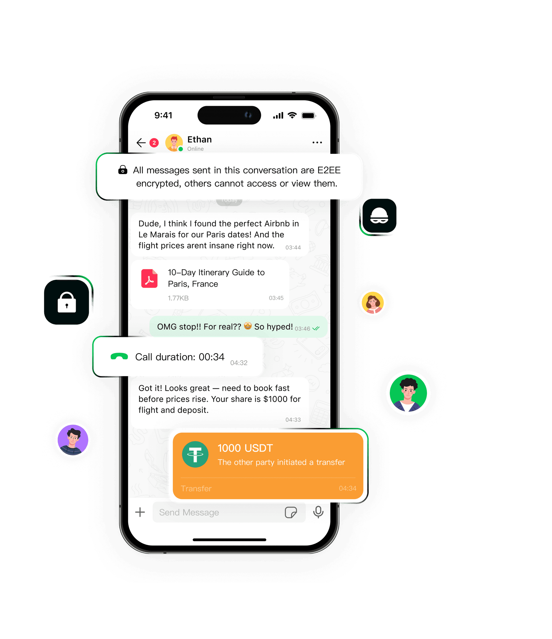 End-to-end encryption means your personal messages, calls, and files stay between you and who you send them to. Not even MPChat can access them.